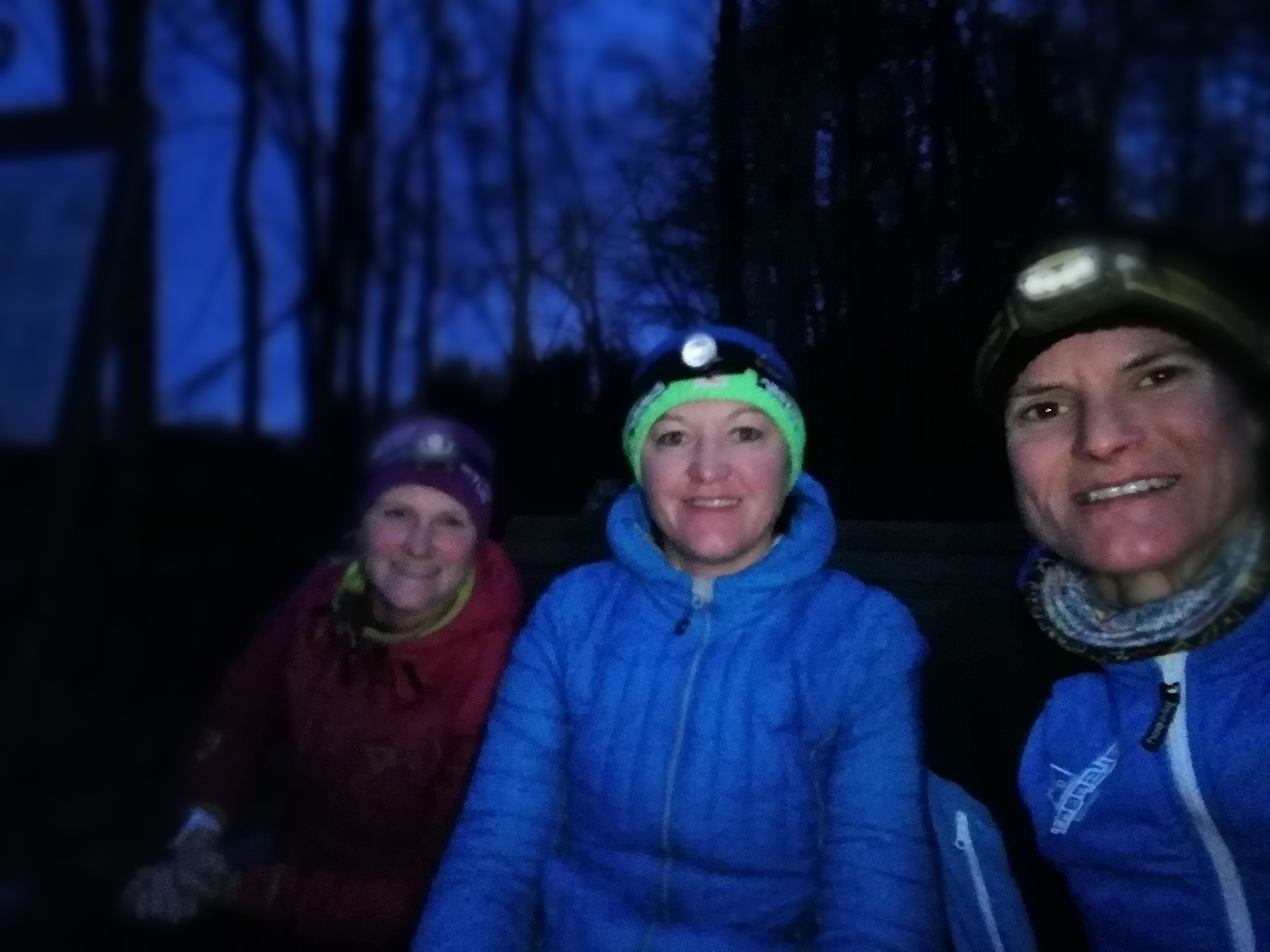 Im Freien wollten wir uns allerdings nicht lange aufhalten und so machten wir uns noch vor Aurelien mit seiner Gruppe auf den Weg rauf zur Zillhöhe. Irgendwie verließ uns da etwas die Motiviation, denn es war noch immer finster!!!! Bei meinen letzten Wanderungen war Klagenfurt immer der Ort wo es hell wurde, da wir aber diesmal so schnell unterwegs waren trotteten wir in der Finsternis weiter bis zum Gut Drasing.